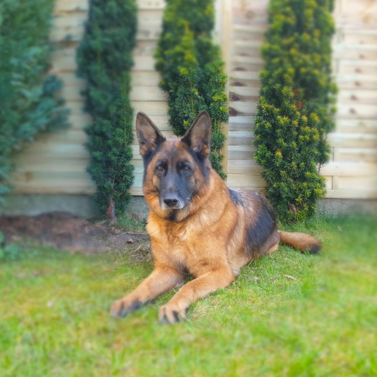 Zu unserer Familie gehört auch unsere Schäferhündin Vitani, geboren 2012 und mittlerweile 13 Jahre alt. Sie ist wirklich etwas ganz Besonderes – gerade, wenn man bedenkt, dass diese Rasse oft ein anderes Bild zeigt.