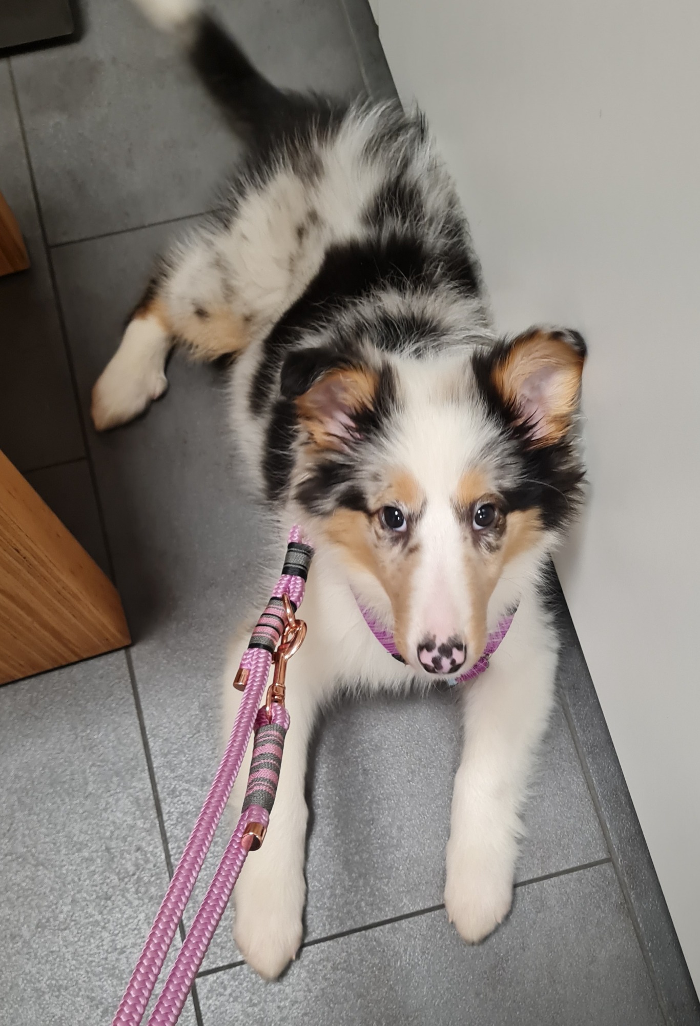Ihr Weg zu uns war ein besonderer Zufall: Eigentlich war gar keine neue Fellnase geplant. Doch als die Annonce auftauchte, ließ uns das süße Blue-Merle-Mädchen nicht mehr los. Obwohl wir der Fellfarbe zuvor gar nicht so viel abgewinnen konnten, änderte Octi das schlagartig. Schon am nächsten Tag – am 24. Dezember – machten wir uns auf den Weg. Der erste Blick genügte: Octavia gehörte zu uns.